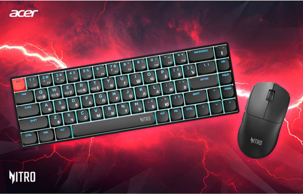 Компания Acer представила новую игровую периферию: беспроводную мышь OMR402 и беспроводную клавиатуру OKR400 из серии Nitro.