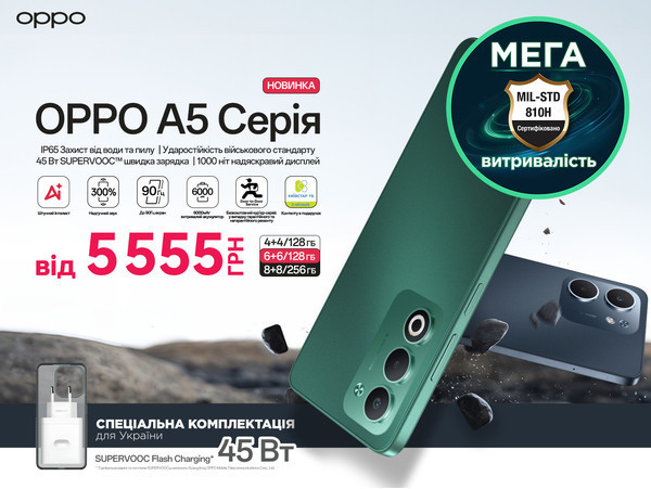 На додачу до перелічених фішок цих смартфонів, компанія ОРРО AED Україна підготувала спеціальну пропозицію для своїх клієнтів. Так, можна отримати знижку на OPPO A5x (4/128 ГБ) та OPPO A5 (6/128 ГБ) з 22 вересня по 05 жовтня і придбати смартфони лише за 5 555 грн та 6 499 грн відповідно. А OPPO A5 (8/256 ГБ) за спеціальною ціною 7 499 грн можна придбати з 29 вересня по 12 жовтня 2025 року.