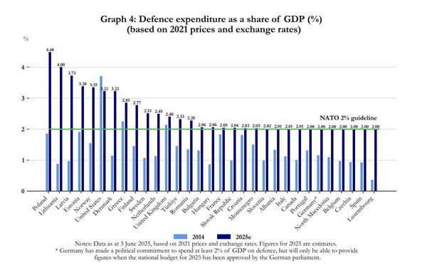 Ознакомившись с документом, Reuters сделало вывод, что в текущем году все члены НАТО достигнут цели по расходам на оборону в размере 2% ВВП, хотя еще в 2024 году до этого показателя недотягивали более трети членов НАТО.